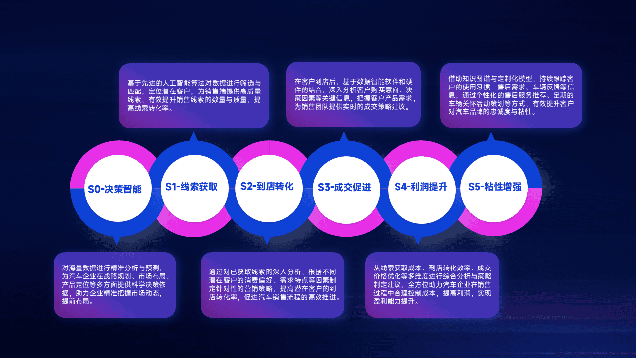 通过拓宽潜在客户来源、、、、优化线索分配并提高到店转化率,,以增强销售效率。。。同时,,,利用线索数据不断优化分析模型,,,有效提升转化率,,,扩大营销影响力。。